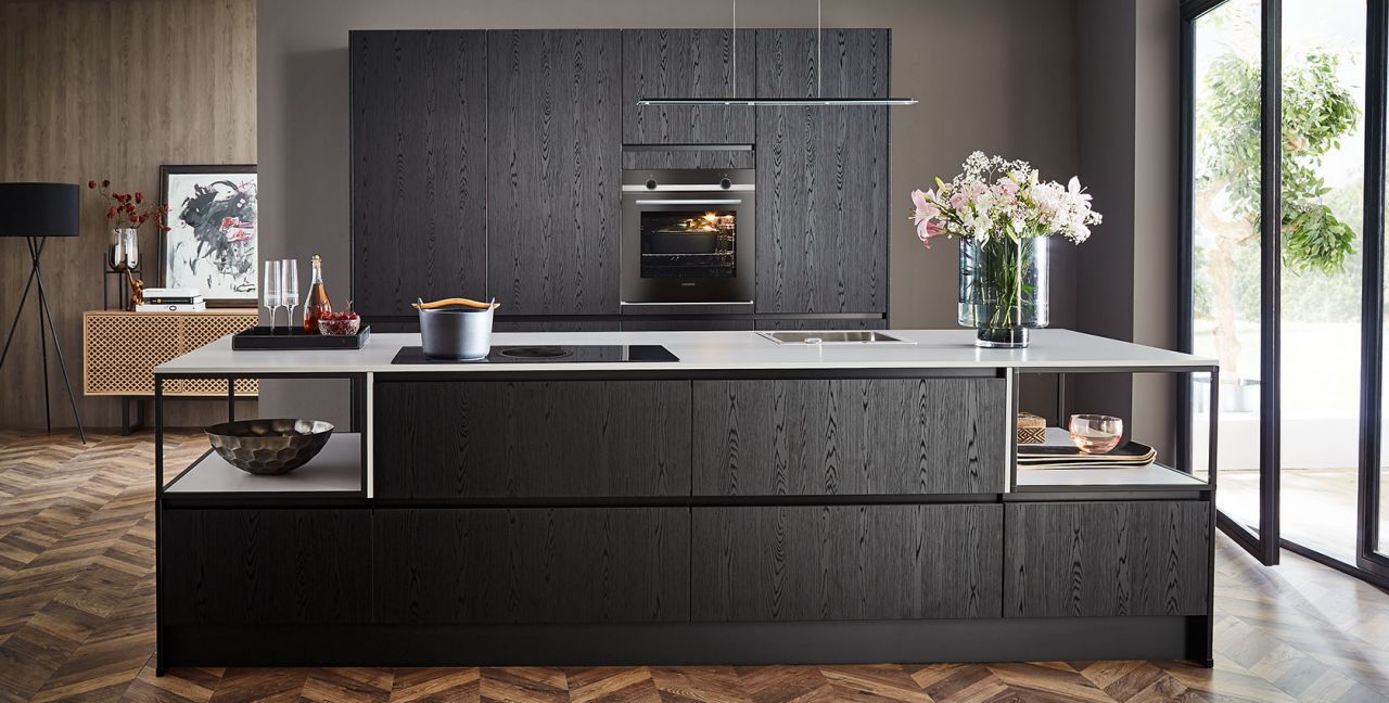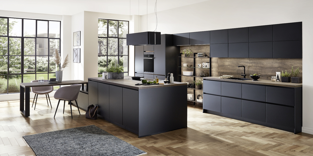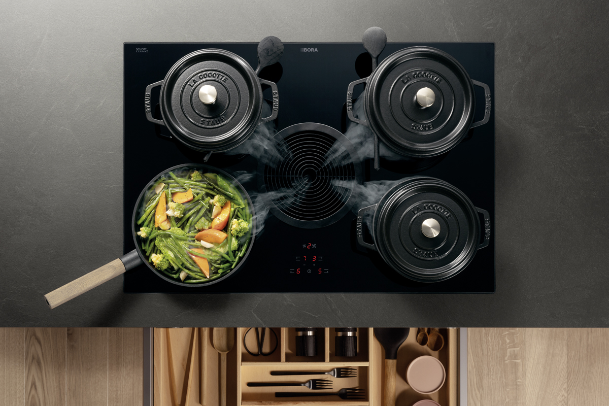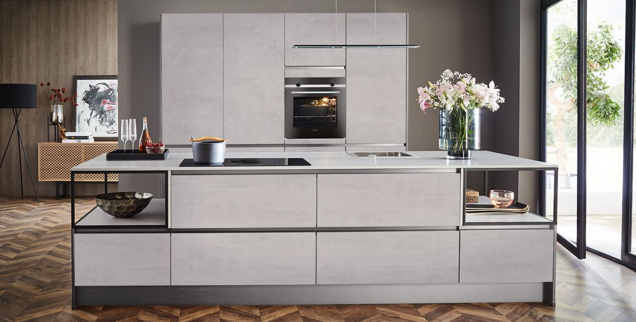 Inclusief RVS-inbouwoven Siemens HB510ABR1 Energieklasse A, keramische kookplaat met inductie en werkbladafzuiging (circulatielucht) Bora GP4U, koelkast Laurus LKG88E Energieklasse E, volledig geïntegreerde vaatwasmachine Laurus LSV60-4 Energieklasse E, RVS-inbouwspoelbak Rodi BOX LUX 46, onderkasten met grote laden, open kasten Smartcube.