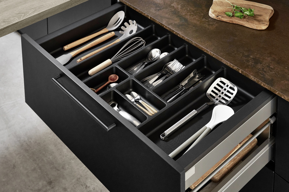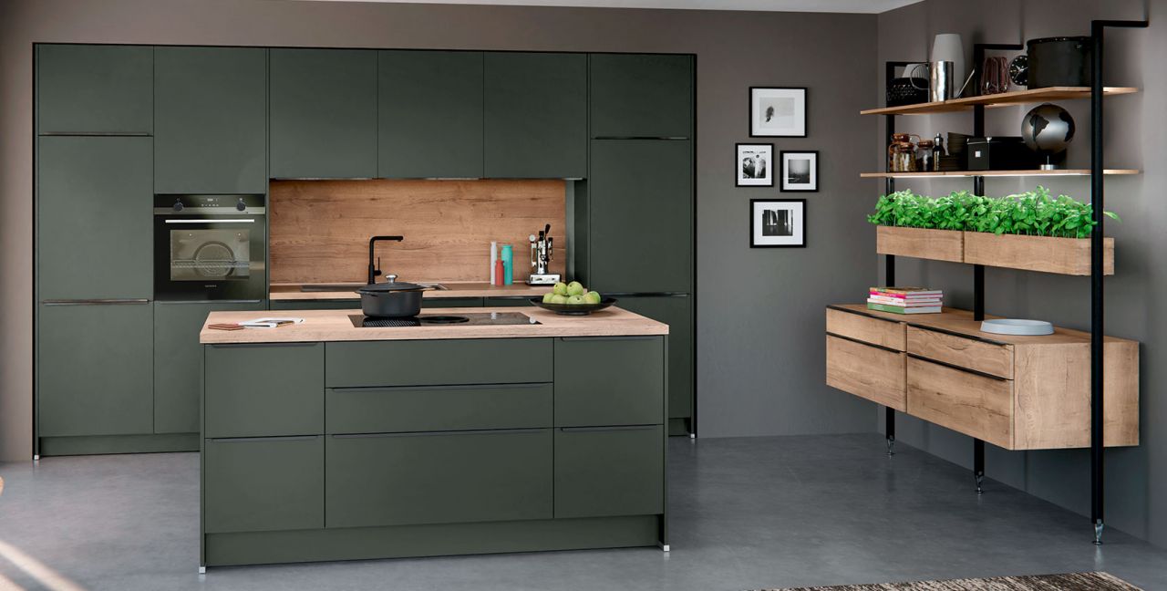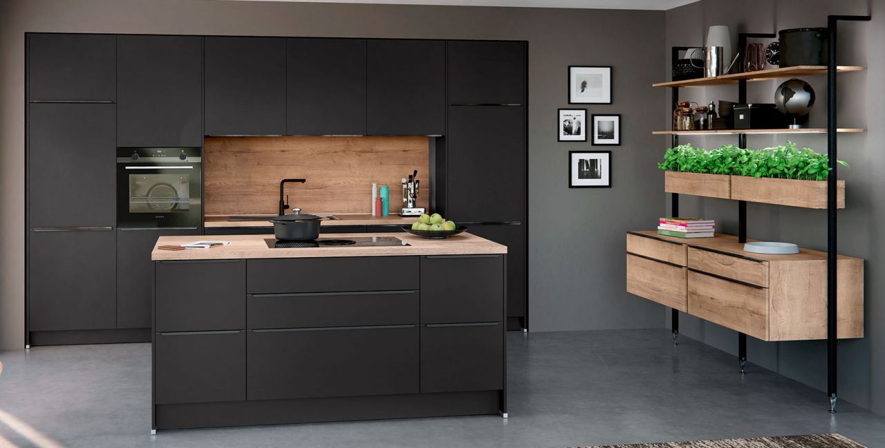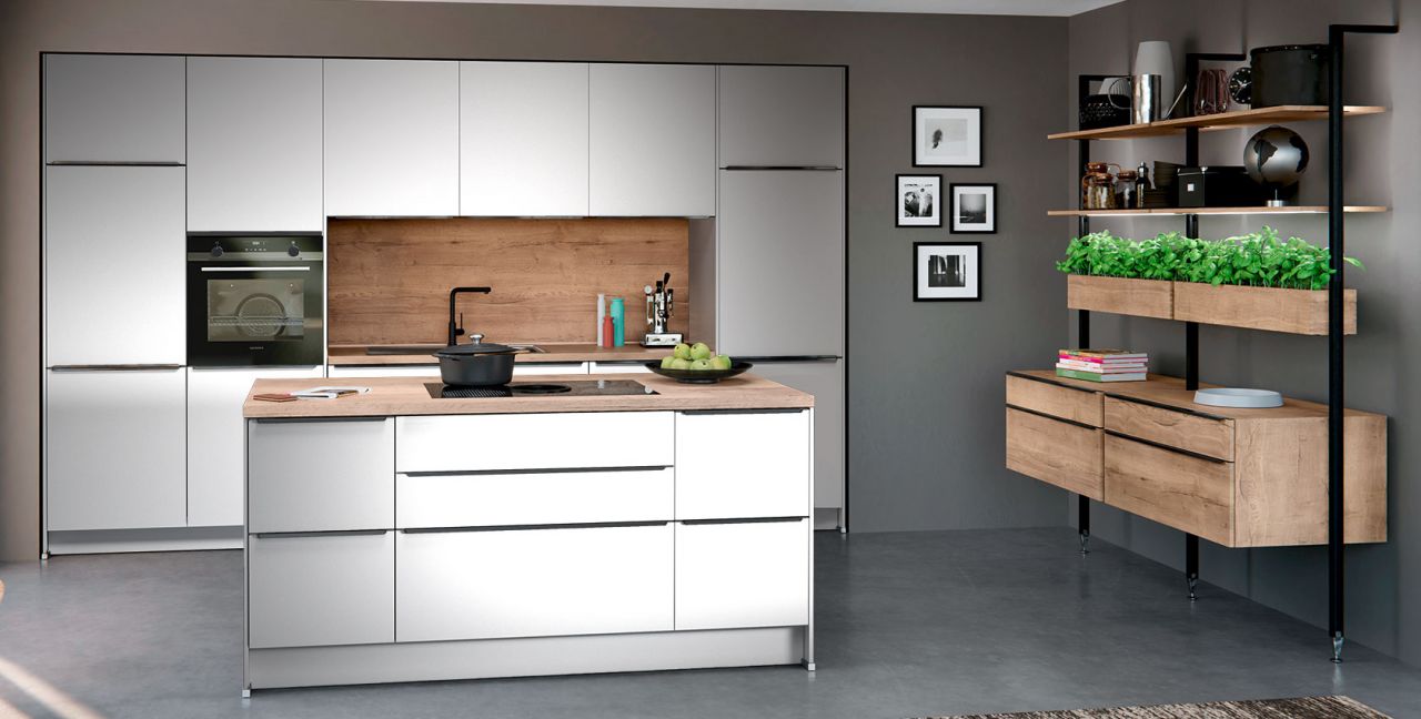 Inclusief RVS-inbouwoven Siemens HB517ABS0 Energieklasse A, keramische kookplaat met inductie en werkbladafzuiging (circulatielucht) Bora GP4U, koelkast Laurus LKS88E Energieklasse E, volledig geïntegreerde vaatwasmachine Junker JS55X02ITE Energieklasse E, RVS-inbouwspoelbak Rodi Okio Line 85 Deep, plankenreksysteem, onderkasten met grote laden.