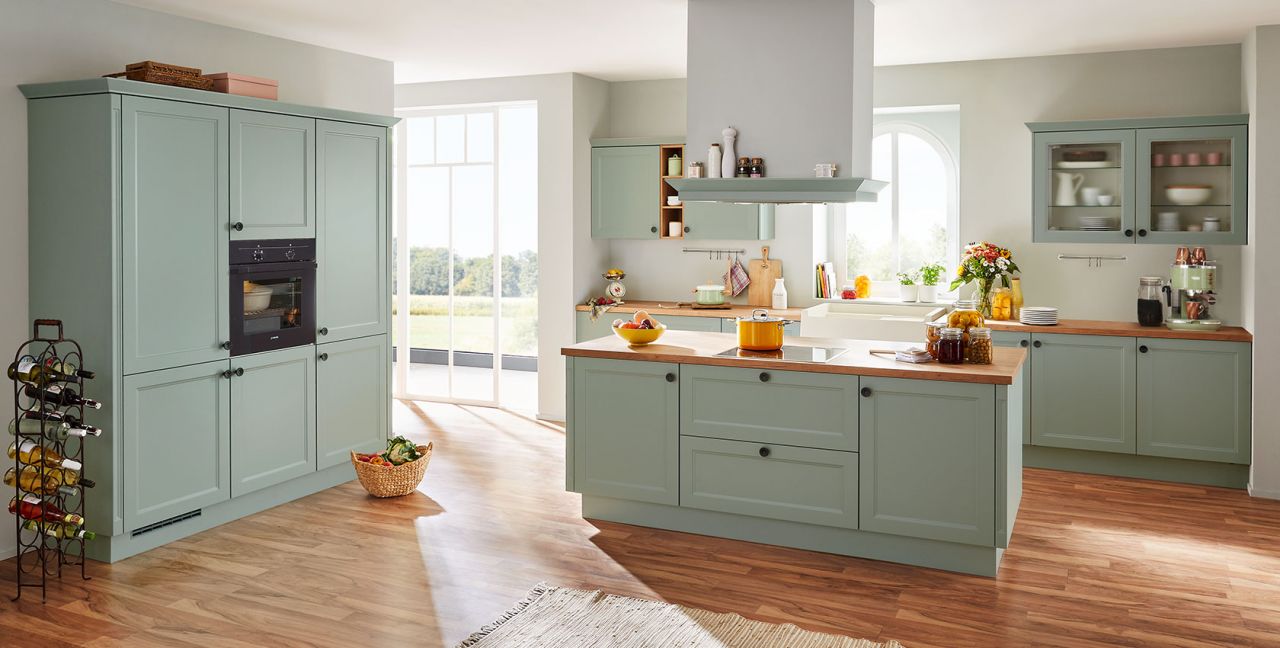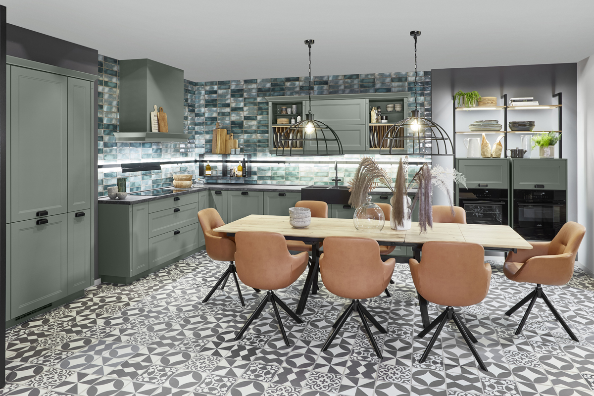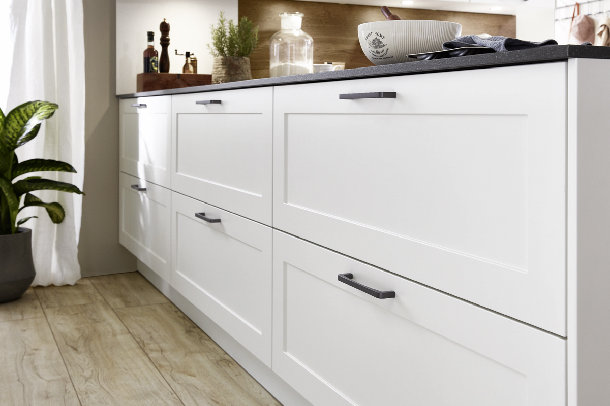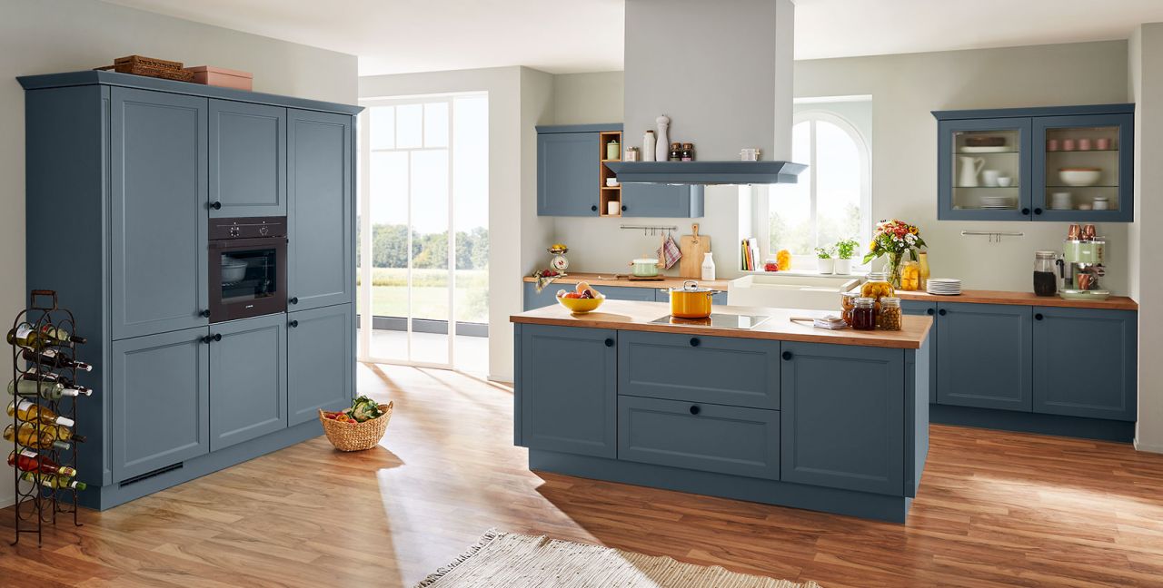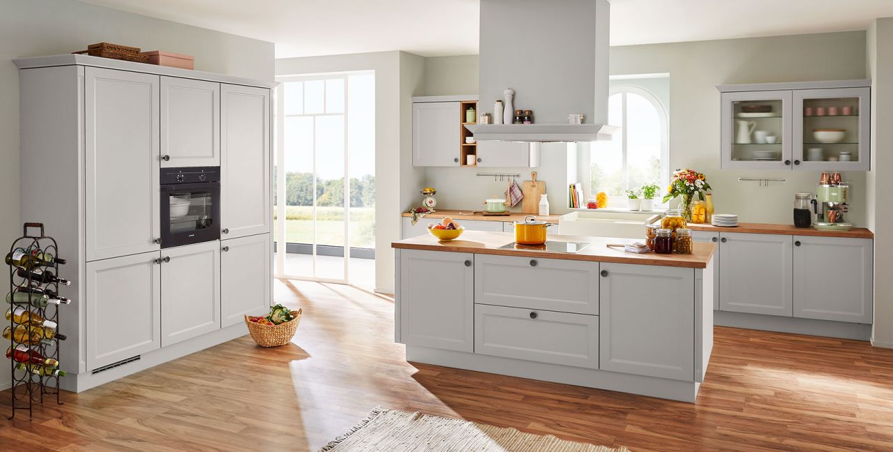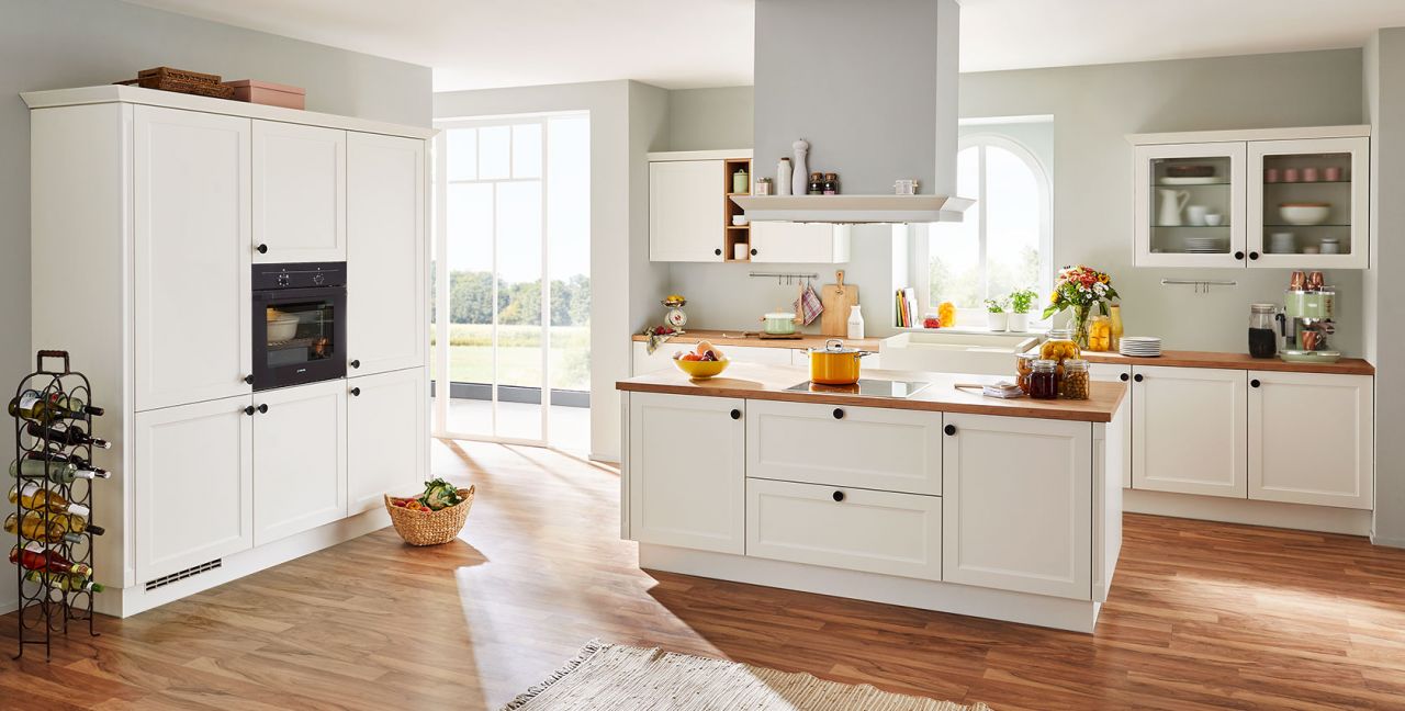 Inclusief inbouwoven zwart Junker JF1300061 Energieklasse A, keramische kookplaat Junker JR36DT54, landelijke schouw met onderbouwdampkap Airforce F96-90 Energieklasse C, koelkast Laurus LKS88E Energieklasse E, volledig geïntegreerde vaatwasmachine Junker JS55X02ITE Energieklasse E, inbouw-designspoelbak Schock Grando M-100, onderkast met uittrekinterieur, wandkasten met glaspaneeldeur, wand-schappenkast.